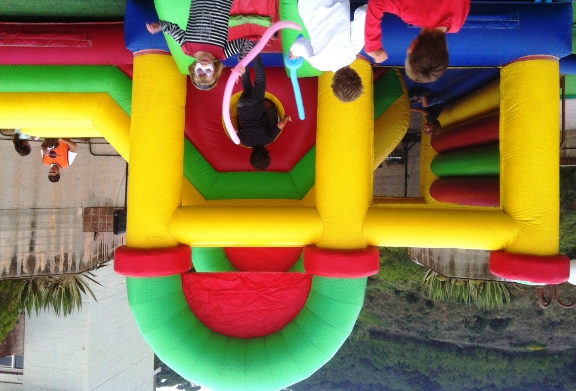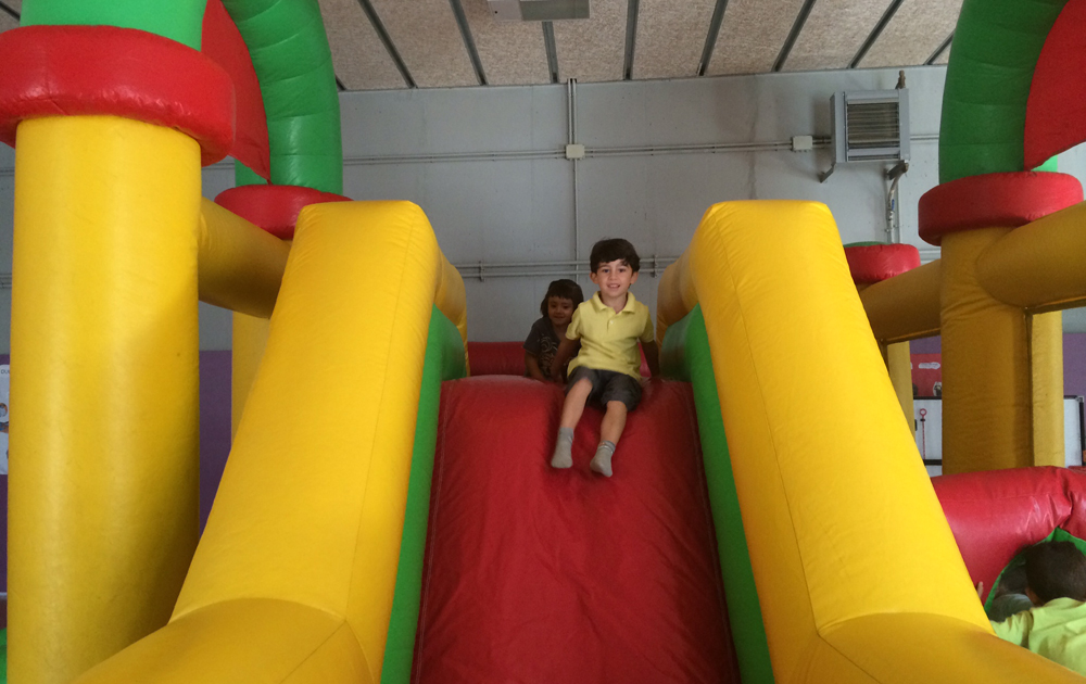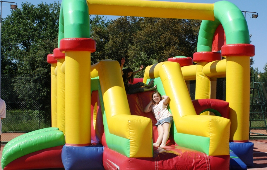 Inflable que disposa de dues entrades. En el seu interior hi ha una petita zona per saltar, un túnel i una escala per accedir i baixar pel tobogan.