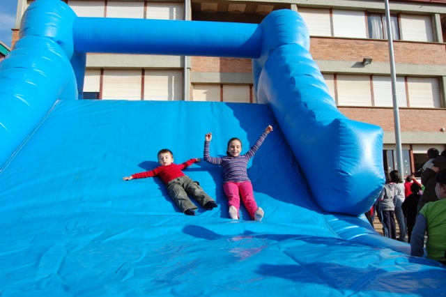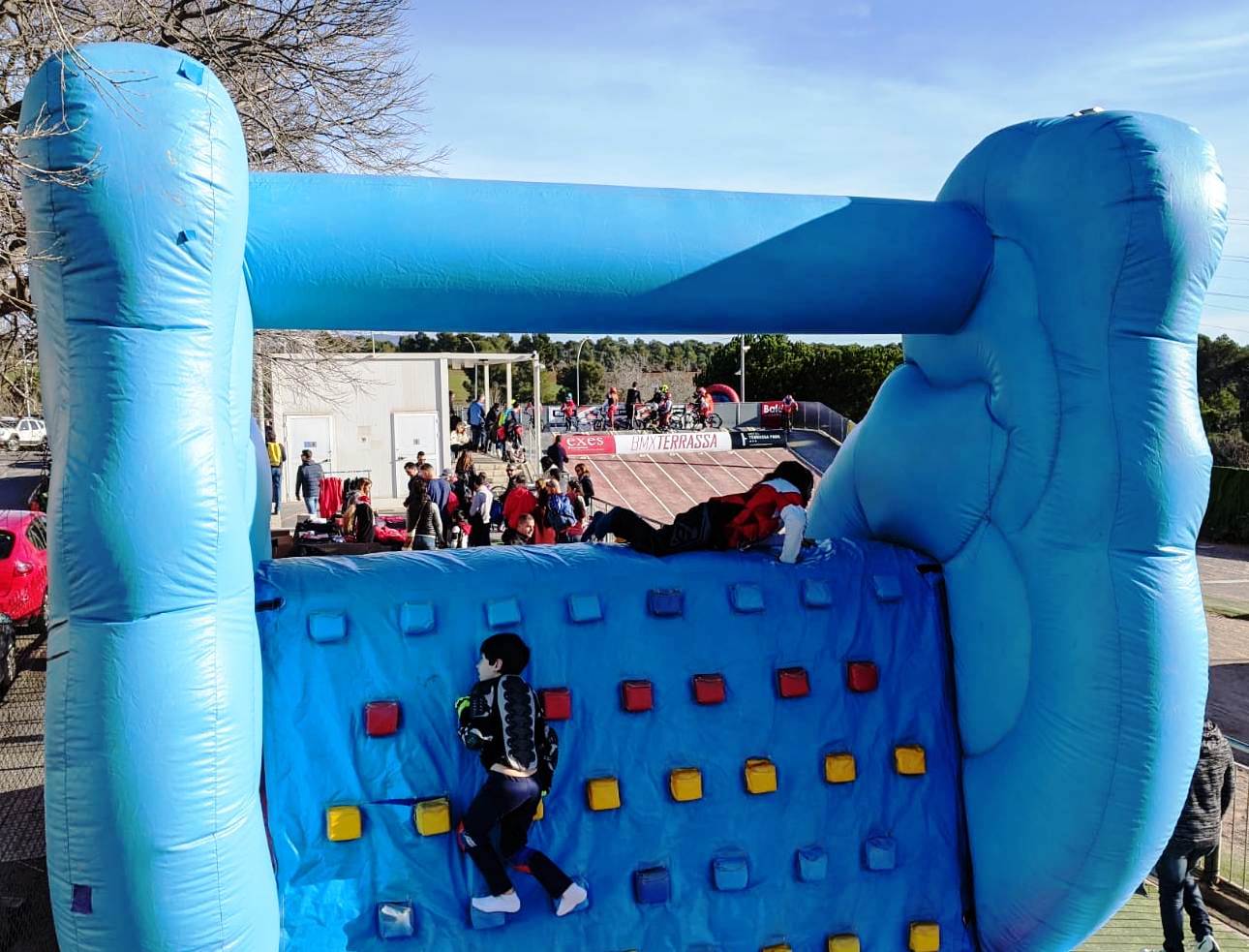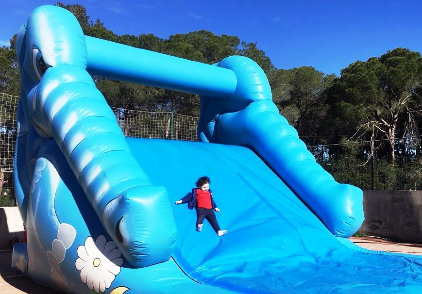 Inflable tobogan que disposa d’un rocòdrom per la part de darrera per on els nens/es poden pujar i baixar per la rampa. Aquest correspon al model gran.